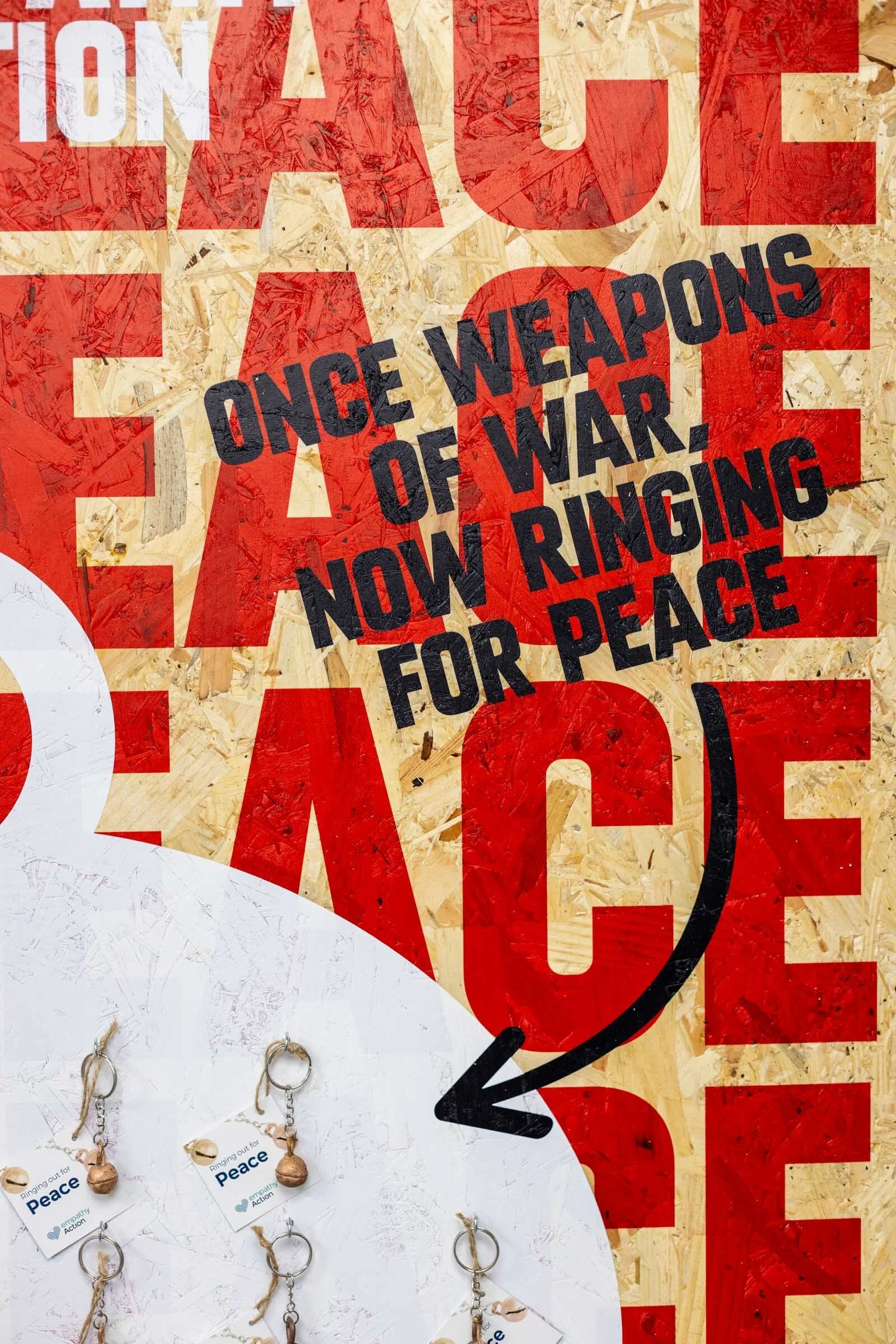 Bold typography, colours and positive, immediate messages were printed direct to media on a standard size sheet of OSB timber board. These over-sized point of sale displays combine to form a flexible backdrop for hand-made gifts, volunteering opportunities and community events.